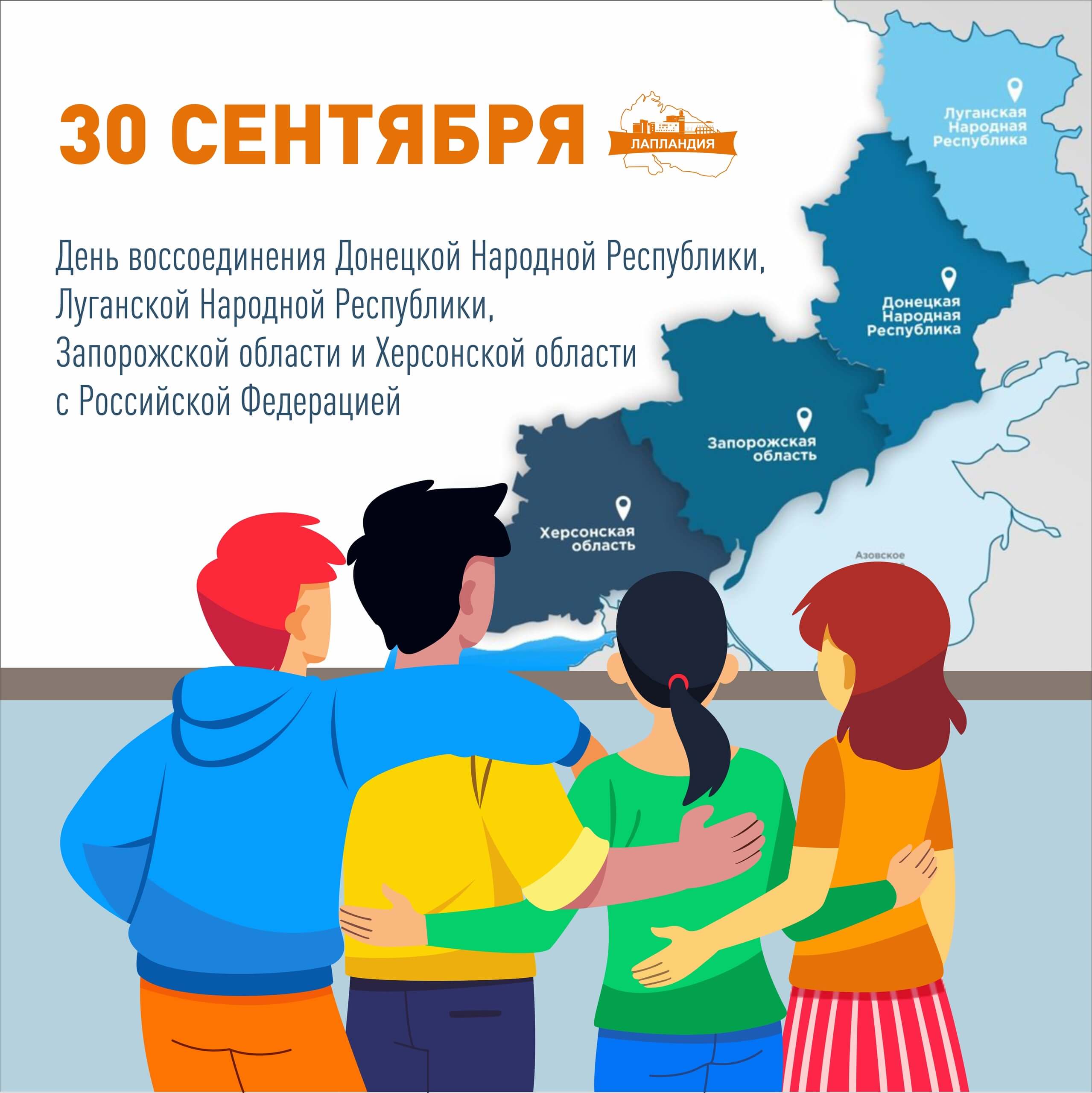 30 сентября в России отмечается День воссоединения Донецкой Народной Республики, Луганской Народной Республики, Запорожской и Херсонской областей с Российской Федерацией.