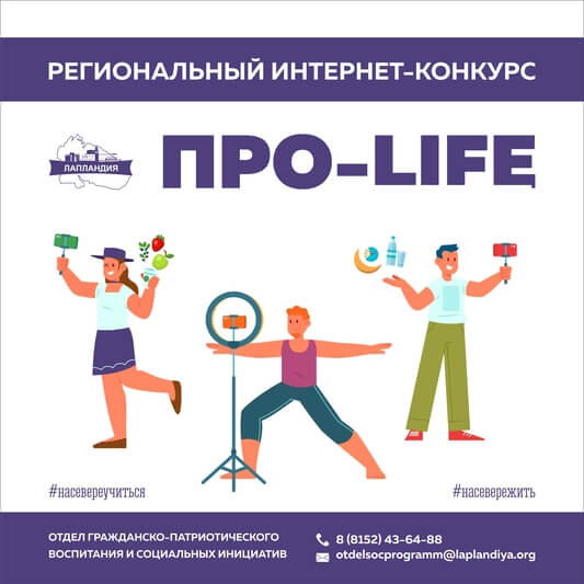 Региональный интернет-конкурс «Про-life» проводится с 30 января по 30 апреля в целях популяризации ведения здорового образа жизни, формирования у обучающихся навыков здорового и безопасного поведения, ценностного отношения к своему здоровью.